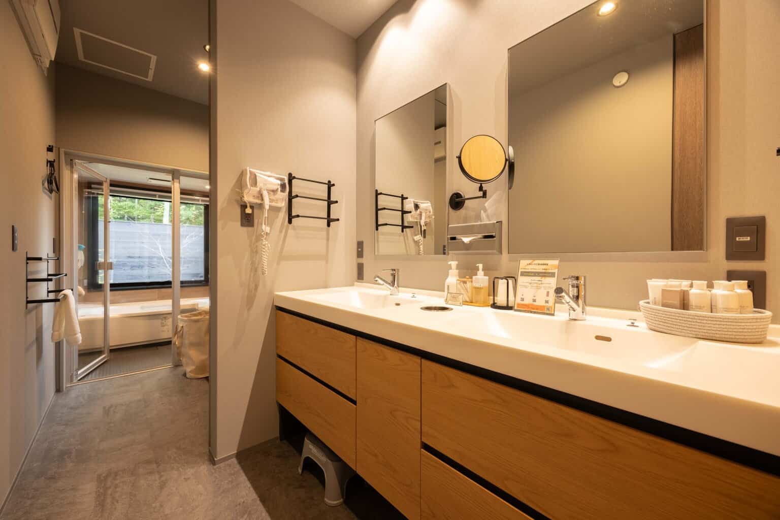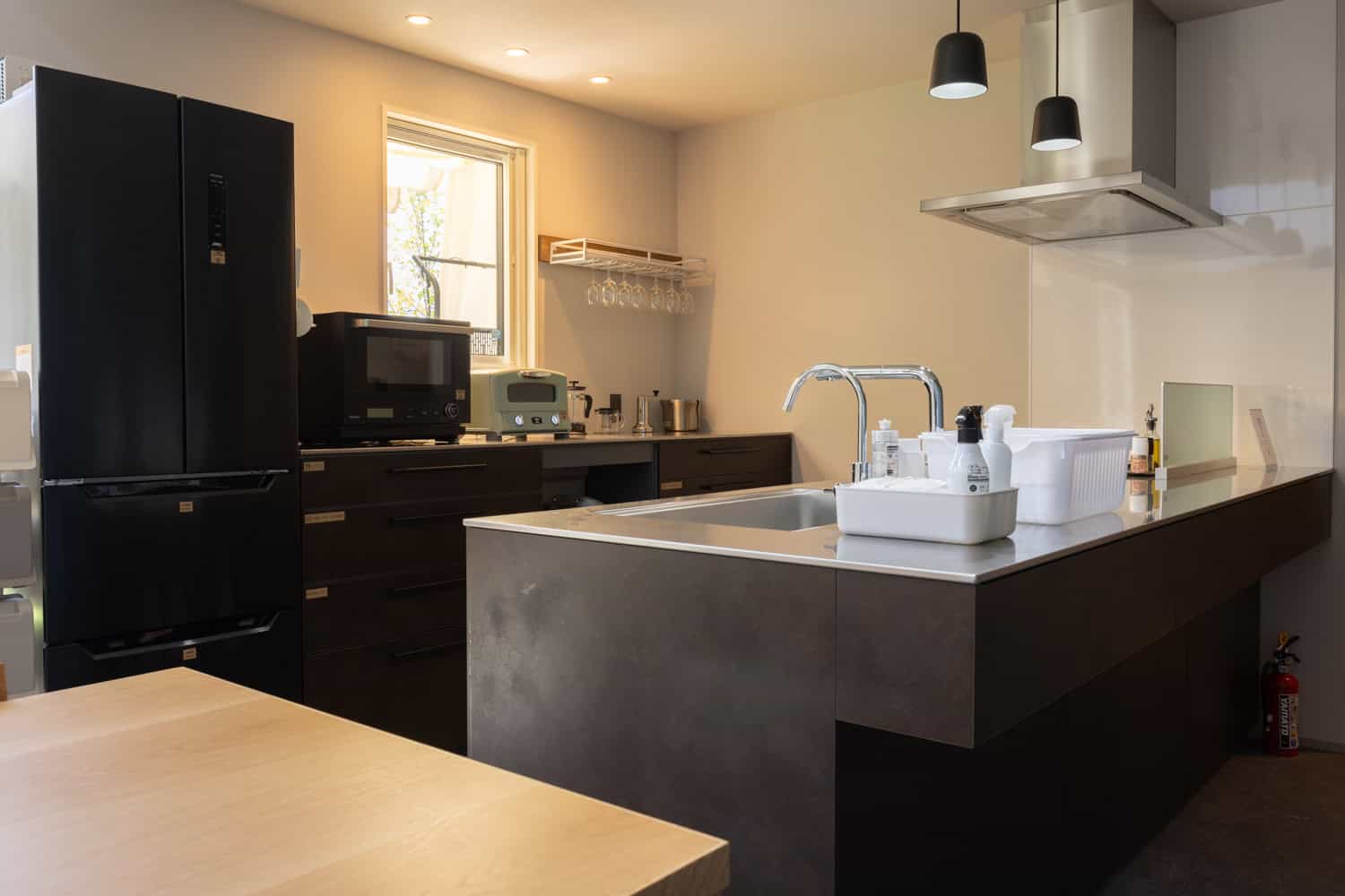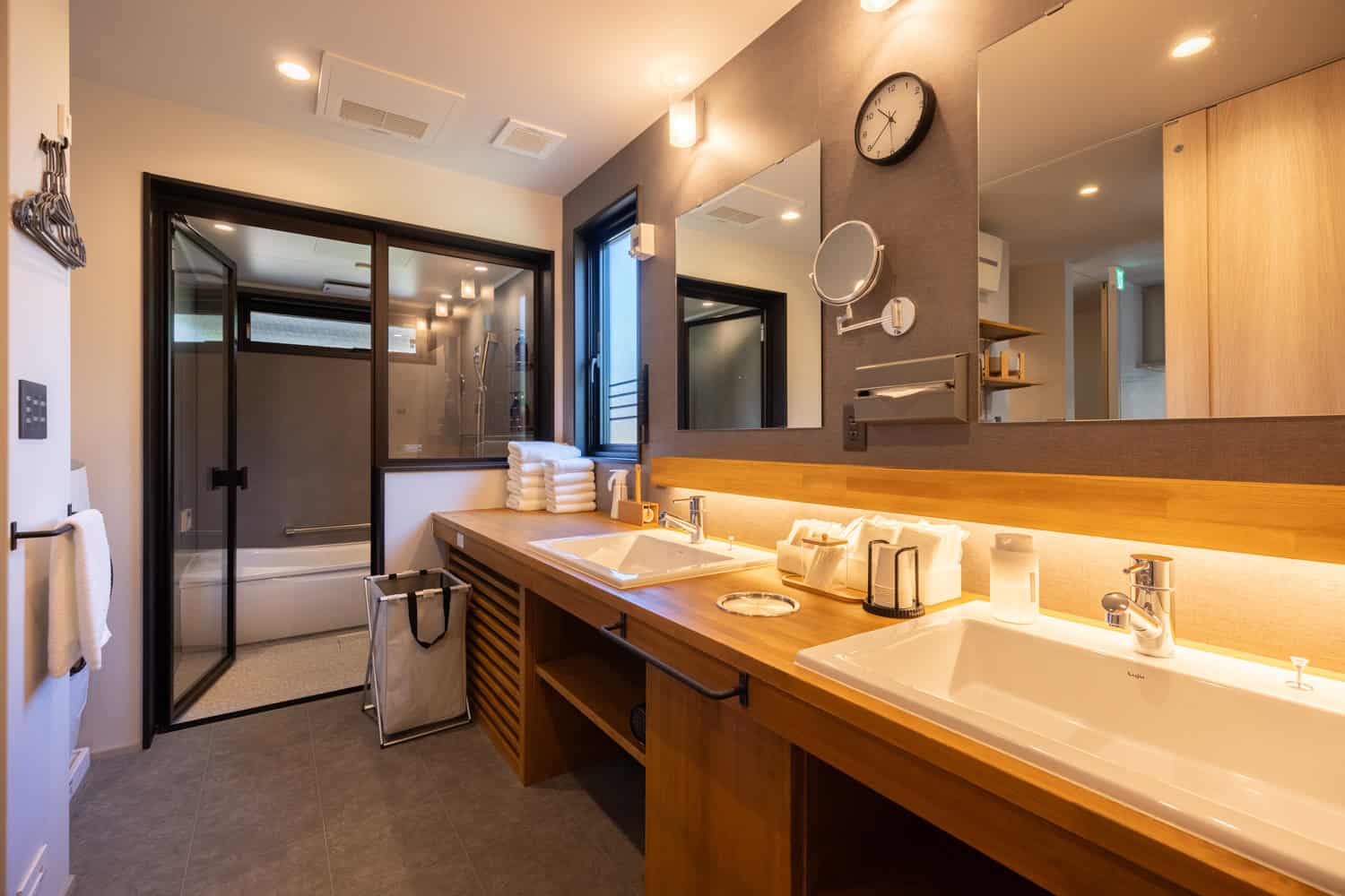 宿は 3つのベッドルーム、ゆとりあるLDK、サウナ を備えた和モダンの平屋造り。さらに、約400㎡の 天然芝プライベートドッグラン、愛犬のための トリミング室 と 水洗トイレ も完備しています。半屋内テラスでは BBQ や 星空ダイニング もお楽しみいただけます。
