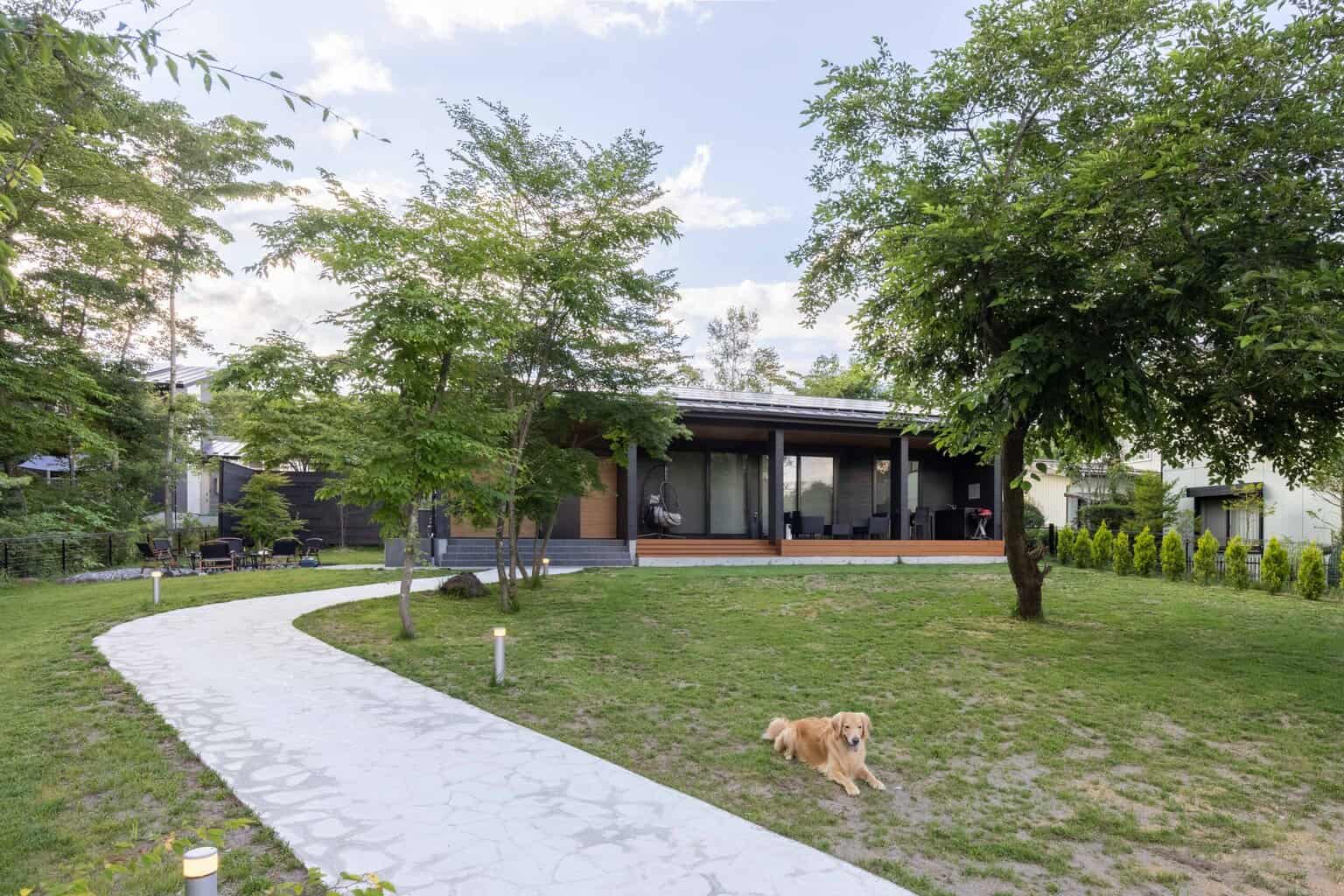 広々とした1,070㎡の敷地には、3つのベッドルーム、ゆとりあるLDK、静かな書斎を備えた平屋造りの宿と、約500㎡の天然芝プライベートドッグランを完備。