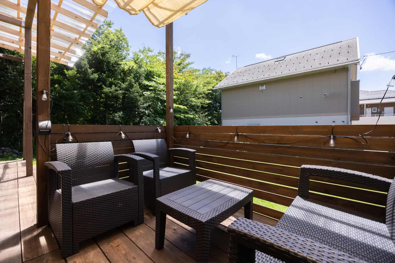 屋内には愛犬用の水洗トイレを設置し、ワイドテラスではBBQや星空ダイニングをお楽しみいただけます。